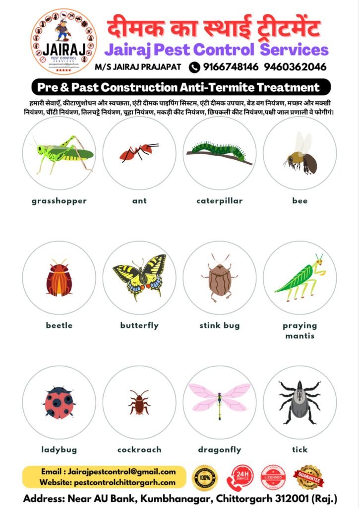 Are creepy crawlies taking over your home or office? Regain your peace of mind with Jairaj Pest Control Services, Chittorgarh’s most trusted name in hygiene and pest management. We provide licensed, 24-hour specialized treatments with a 100% Satisfaction Guarantee.