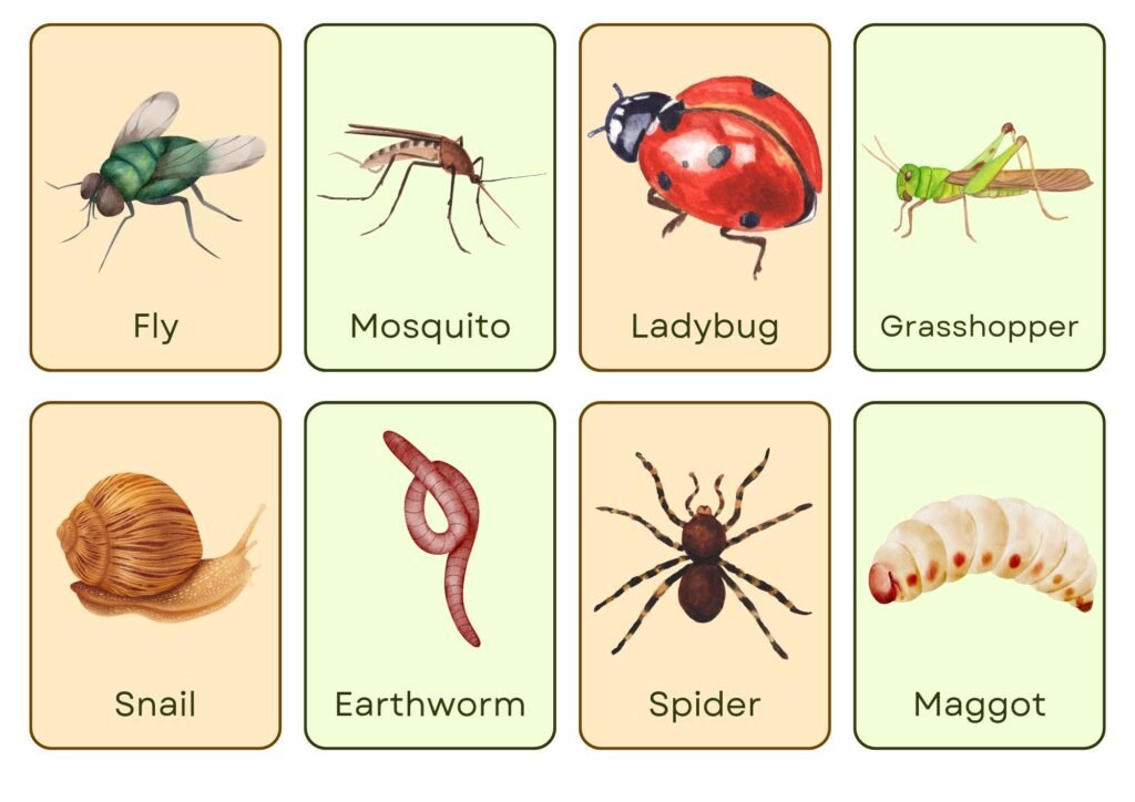 Garden & Outdoor Insects: Grasshoppers, Caterpillars, and Praying Mantises.