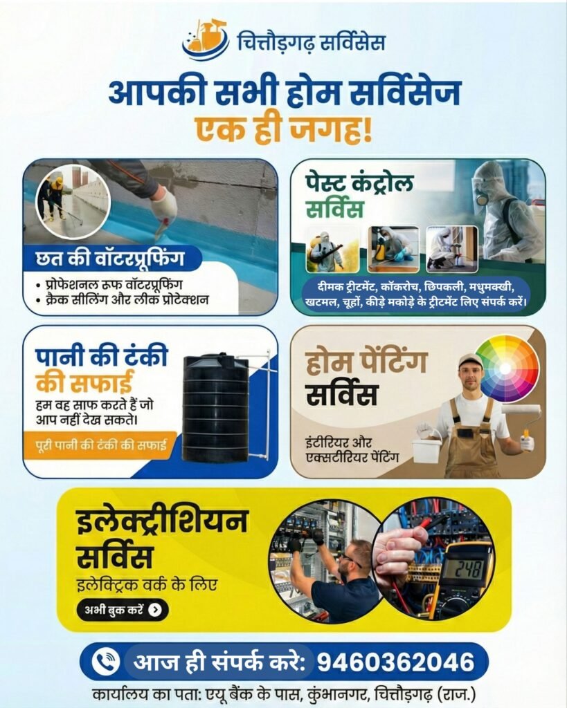 #ChittorgarhServices #HomeServices #Chittorgarh #PestControl #HomeDecor #Waterproofing #CleaningServices #Rajasthan #LocalBusiness #HomeMaintenance